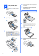 a 2 Load plain A4 paper d e Pull the paper tray a completely out of the machine. Fan the stack of paper well to avoid paper jams and misfeeds. Gently put the paper into the paper tray print side down and top edge first. Check that the paper is flat in the tray. Important Do not push the paper in too far. 1 b Open the paper tray cover a. 1 f g Gently adjust the paper side guides to the paper with both hands. Make sure that the paper side guides touch the edges of the paper.