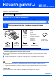 Руководство по быстрой установке Начало работы MFC-250C MFC-290C MFC-297C Перед началом использования устройства изучите инструкции по установке и настройке в данном Руководстве по быстрой установке. ПРЕДУПРЕЖДЕНИЕ Предупреждения содержат инструкции, которые необходимо выполнять во избежание возможных травм. ВАЖНАЯ ИНФОРМАЦИЯ На данном этапе не подключайте кабель USB. 1 Распакуйте устройство и проверьте комплектацию 1 Начальные чернильные картриджи (4 шт.
