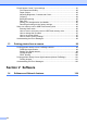 Table of Contents Section I 1 General General Information 2 Using the documentation ....................................................................................... 2 Symbols and conventions used in the documentation .................................... 2 Accessing the Software User’s Guide and Network User’s Guide ........................3 Viewing Documentation...................................................................................3 Accessing Brother Support (For Windows®) ...........