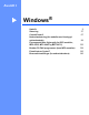 Avsnitt I ® Windows Utskrift Skanning ControlCenter3 Nettverksskanning (for modeller med innebygd nettverksstøtte) Fjernoppsett (ikke tilgjengelig for DCP-modeller, MFC-250C, MFC-290C og MFC-297C) Brother PC-FAX-programvare (bare MFC-modeller) PhotoCapture Center™ Brannmurinnstillinger (for nettverksbrukere) I 2 37 67 94 123 124 143 146