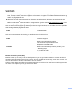 Trådløs konfiguration i Macintosh® k Du skal midlertidigt ændre pc’ens trådløse indstillinger. Følg instruktionerne på skærmen. Sørg for at notere alle indstillinger ned, f.eks. SSID og pc'ens kanal. Du skal bruge dem til at gendanne pc'ens oprindelige trådløse indstillinger 5 Punkt De aktuelle indstillinger for den trådløse computer Kommunikationsmode (Infrastruktur / Ad hoc) Kanal (1-14) Netværksnavn (SSID / ESSID) Godkendelsesmetode (Åbent system / Delt nøgle / Anden...