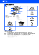 ■ 开始 纸箱内部组件 8 MFC 1 7 快速设置指导手册 2 3 6 5 4 1. 控制面板 2. 正面向下出纸伸长托板 (托纸板) 3. 手动进纸盒 随机光盘 4. 纸盒 5. 前盖 6. 电源开关 7. 文档盖 8. 自动进稿器 (ADF) 使用说明书 自动进稿器托纸板 硒鼓单元组件 电源线 (包括墨粉盒) 电话线 国家不同,箱内组件可能不同。 保存所有包装材料和纸箱。 ■ ■ ■ ■ ■ ■ 接口电缆不是标准附件。请购买适合您使用接口所需的合适接口电缆 (并行或 USB)。 对于并行接口电缆:使用长度不超过 6 英尺 (2 米)的与 IEEE 1284 兼容的双向屏蔽接口电缆。 对于 USB 接口电缆:使用长度不超过 6 英尺 (2 米)的高速 USB2.0 接口电缆。 如果您的计算机使用的是高速 USB2.0 接口,请确保您使用的是合格的高速 USB2.0 电缆。 如果有 USB1.
