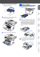 Schritt 1 Inbetriebnahme des MFC 4 Vorlagenstütze 1 befestigen Schließen Sie die Abdeckung des automatischen Vorlageneinzugs. Schließen Sie noch KEIN Datenkabel an. Das MFC wird erst bei der Treiberinstallation angeschlossen. 1 Öffnen Sie die Abdeckung des automatischen Vorlageneinzugs. 2 1 Trommeleinheit einsetzen Öffnen Sie die vordere Abdeckung, indem Sie die Entriegelungstaste drücken.