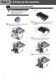 Step 1 Setting Up the machine 1 Install the Drum Unit Assembly Do not connect the interface cable. Connecting the interface cable is done during the software installation process. 1 2 Unpack the drum unit and toner cartridge assembly. 3 Gently rock it from side to side several times to distribute the toner evenly inside the assembly. 4 Put the drum unit assembly into the machine until it clicks into place. 5 Close the front cover of the machine.