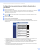 Configuration de la fonction Numérisation vers réseau à l’aide d’un navigateur Web f Choisissez Réseau (1) dans les numéros de profils (1 à 10) à utiliser pour les paramètres Numérisation vers réseau. Vous pouvez également stocker deux noms de fichier définis par l’utilisateur pouvant servir à créer un profil de numérisation vers le réseau en plus des sept noms de fichier prédéfinis dans Créez nom fichier défini par l'utilisateur (2).