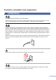 Se o produto ficar excessivamente quente, liberar fumaça ou produzir odores fortes, ou se você derrubar acidentalmente algum líquido sobre ele, desconecte-o imediatamente da tomada elétrica CA. Entre em contato com o Serviço Autorizado Brother. Sacos plásticos são utilizados na embalagem deste produto. Sacos plásticos não são brinquedos. Para evitar o risco de sufocamento, mantenha os sacos plásticos longe do alcance de bebês e crianças e descarte-os de maneira adequada.