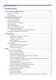 Hem > Innehållsförteckning Innehållsförteckning Innan du använder din Brother-maskin .............................................................................................. 1 Definitioner av anmärkningar ......................................................................................................................... 2 Varumärken....................................................................................................................................................