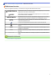 4. Estado inalámbrico Cada uno de los iconos de la tabla siguiente muestra un estado de la red inalámbrica: Su equipo no está conectado al punto de acceso inalámbrico/enrutador. Pulse este botón para ajustar las configuraciones inalámbricas. Información más detallada uu Guía de configuración rápida La red inalámbrica está conectada. Un indicador de tres niveles muestra la intensidad actual de la señal inalámbrica en cada una de las pantallas Inicio.