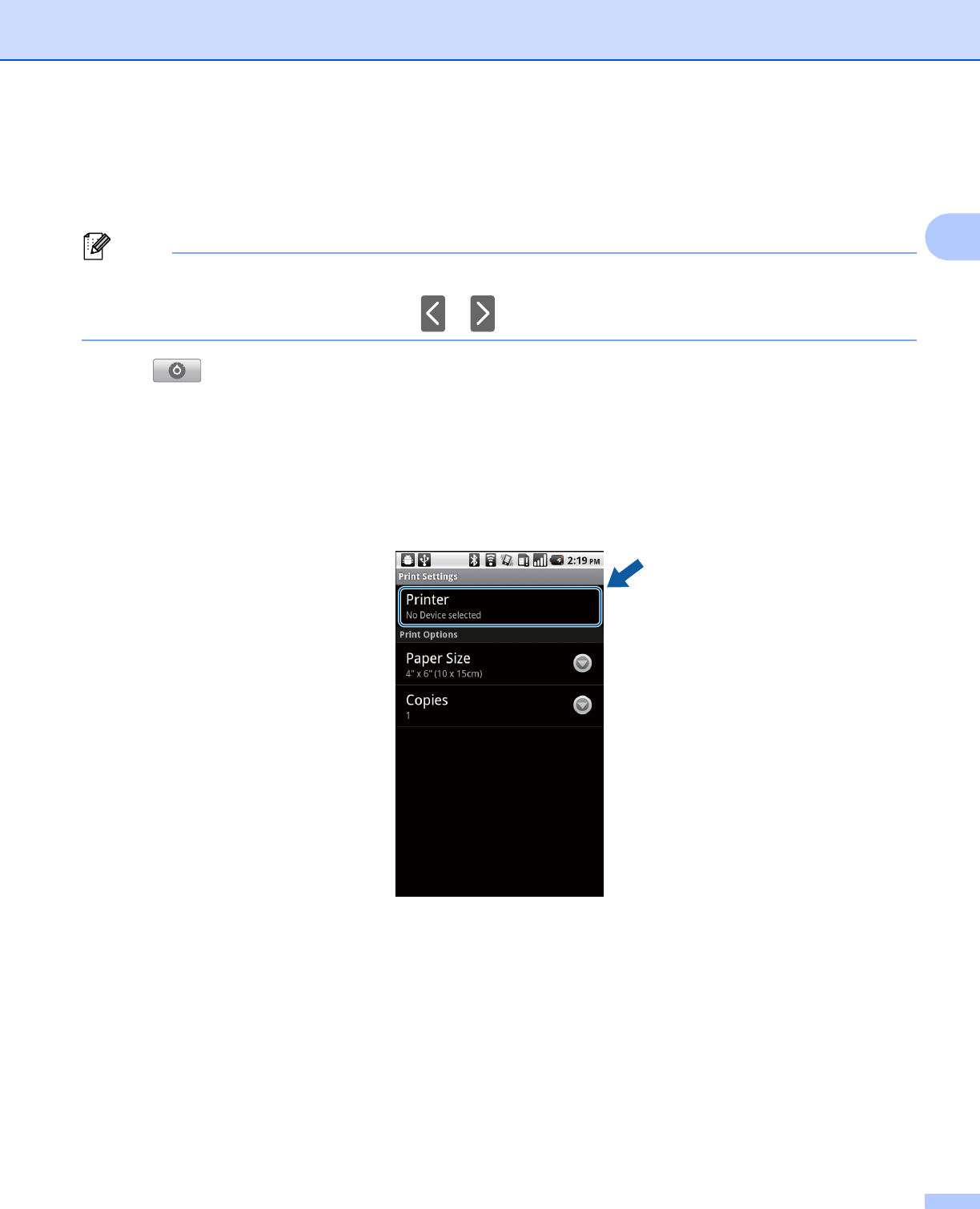 turned on and then tap Printer. Go to step f.
