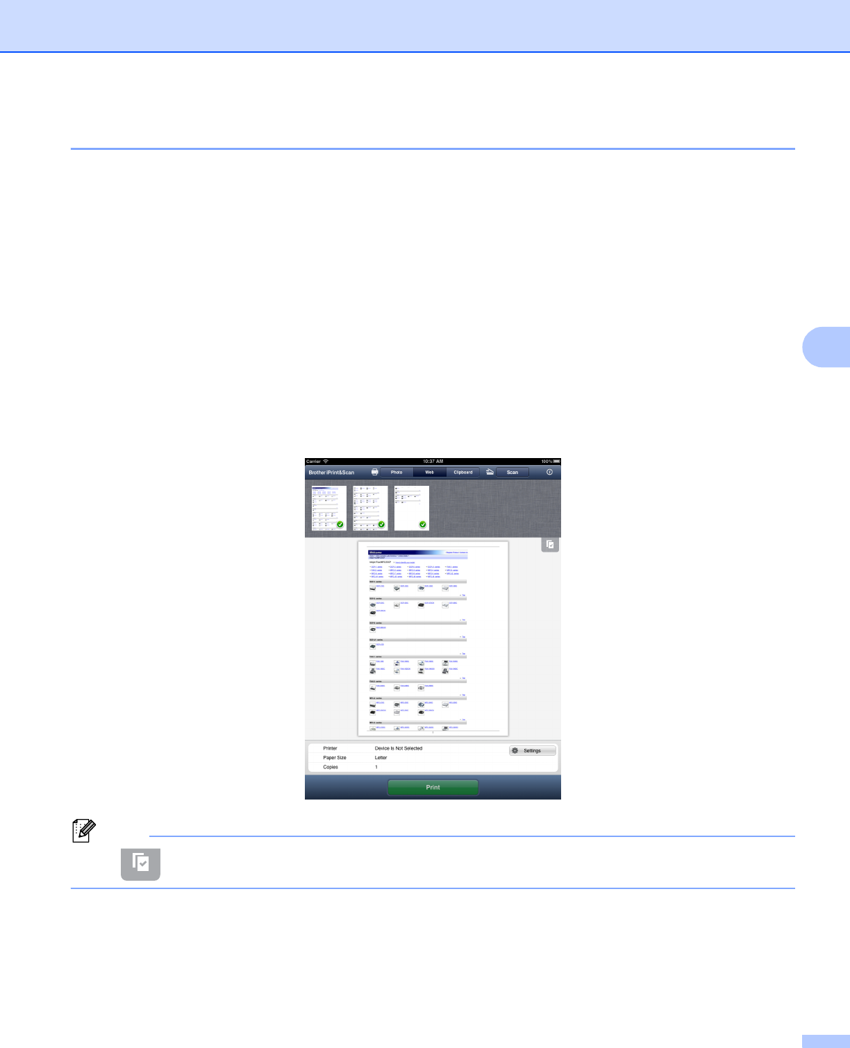 If the Photo, Web or Scan screen is displayed, switch to the Clipboard print function by tapping