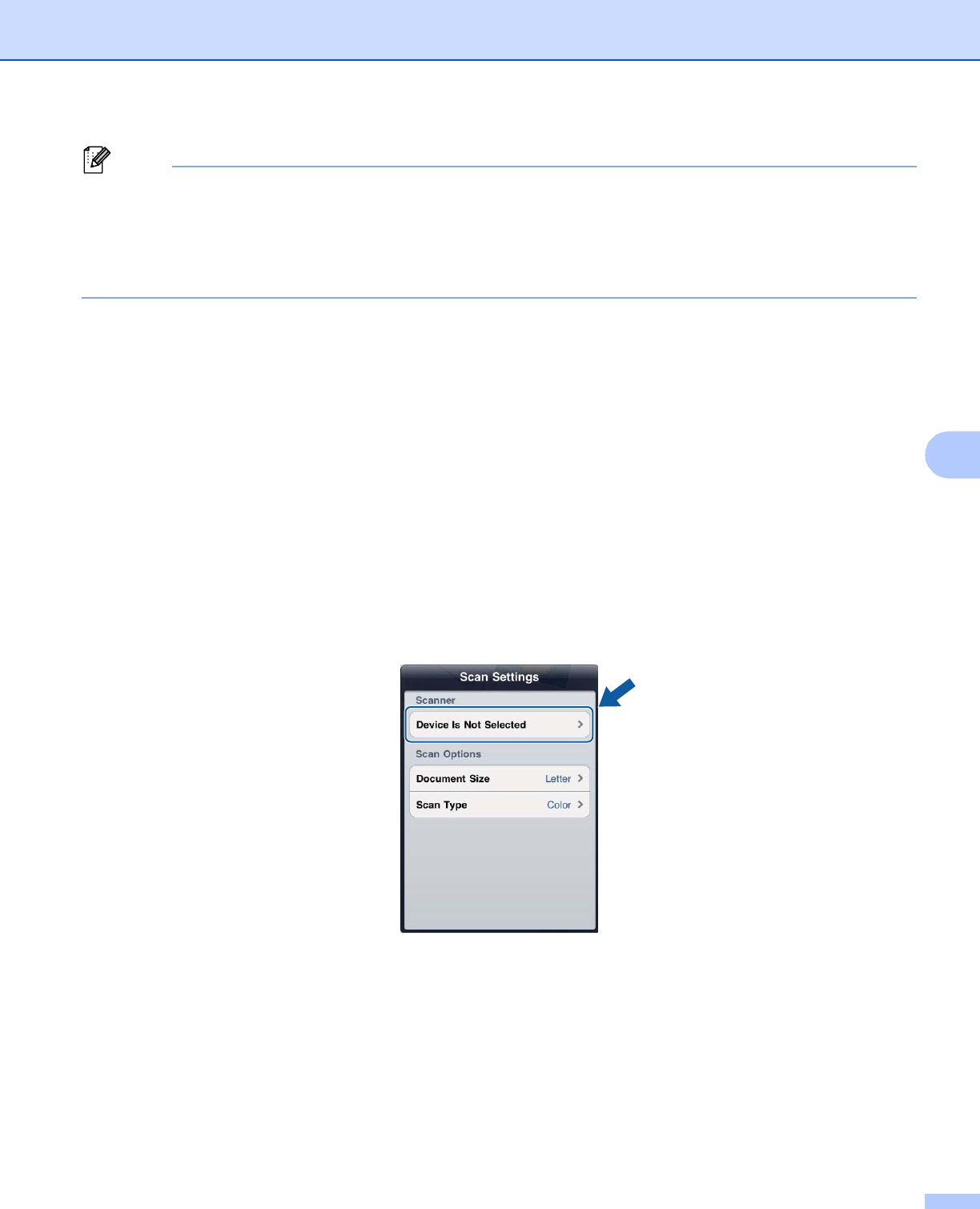 is turned on and then tap the displayed scanner name or Device Is Not Selected. Go to step e.