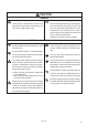 CAUTION Cleaning Turn off the power switch before starting any Be sure to wear protective goggles and gloves cleaning work, otherwise the machine may operate if the start switch is pressed by mis- when handling the lubricating oil and grease, so that they do not get into your eyes or onto take, which could result in injury. your skin, otherwise inflammation can result. Furthermore, do not drink the oil or eat the grease under any circumstances, as they can cause vomiting and diarrhoea.