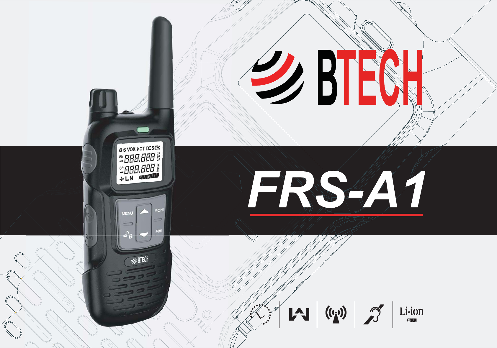 ATTENTION BTECH FRS-A1 is a multi-tasking FRS transceiver that combines the latest technology in radio communication along with a sturdy mechanical frame. The FRS-A1 is designed in simplicity for all users. It works on all FRS channels with all bandwidths and privacy tones supported. The FRS-A1 allows you to simultaneously monitor two different FRS channels at once. The FRS-A1 also includes a flashlight, NOAA weather radio receiver, and an FM radio receiver.