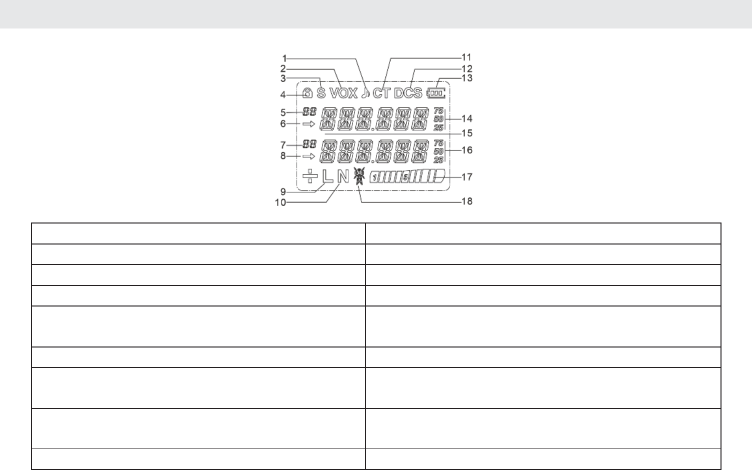1. Call Tone (Off, 1–20) 10. Narrowband Indicator (working at 12.5KHz)