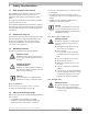 1 Safety Considerations DANGER TO LIFE from electric shock. WARNING! z Only qualified electricians are permitted to carry out electrical work. z Please observe all installation instructions. – Cleaning brushes and/or chemical cleaning agent for wet cleaning through poisoning. Insufficient ventilation can result in hazardous discharge of flue gas when operation requires air from the room. z Never block off or obstruct air ducts and vents or reduce their size.