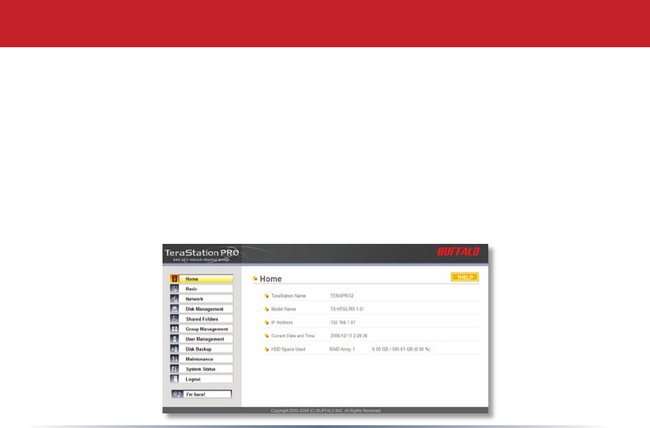 Welcome to the conguration GUI for the TeraStation! Bookmark this page in your browser so it