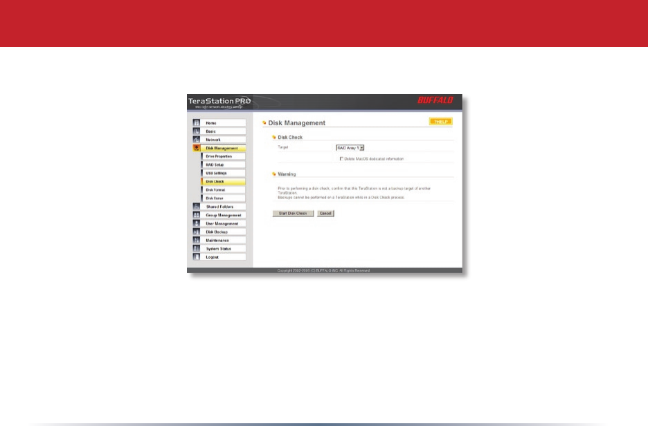 or array that you want to check from the Target dropbox and click the Start Disk Check button.