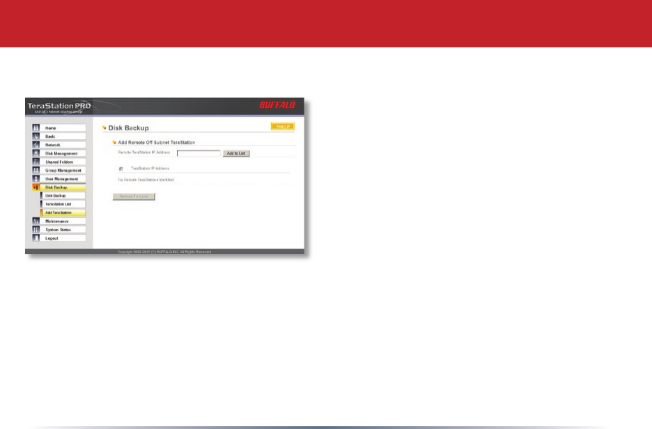 TeraStation IP Address eld and click the Add to List button. For remote TeraStation backups,