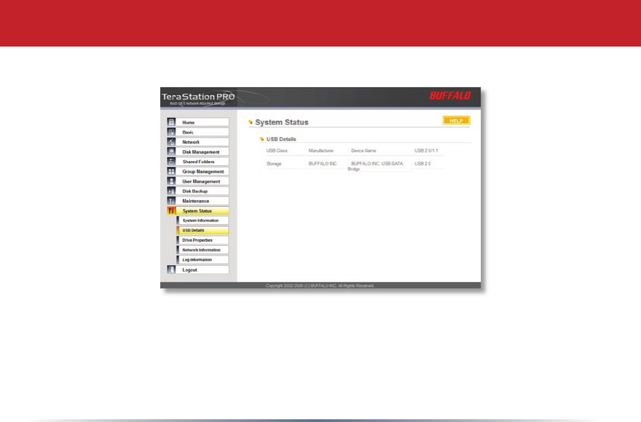 This page shows you details on USB hard drives and UPSs plugged into your TeraStation.