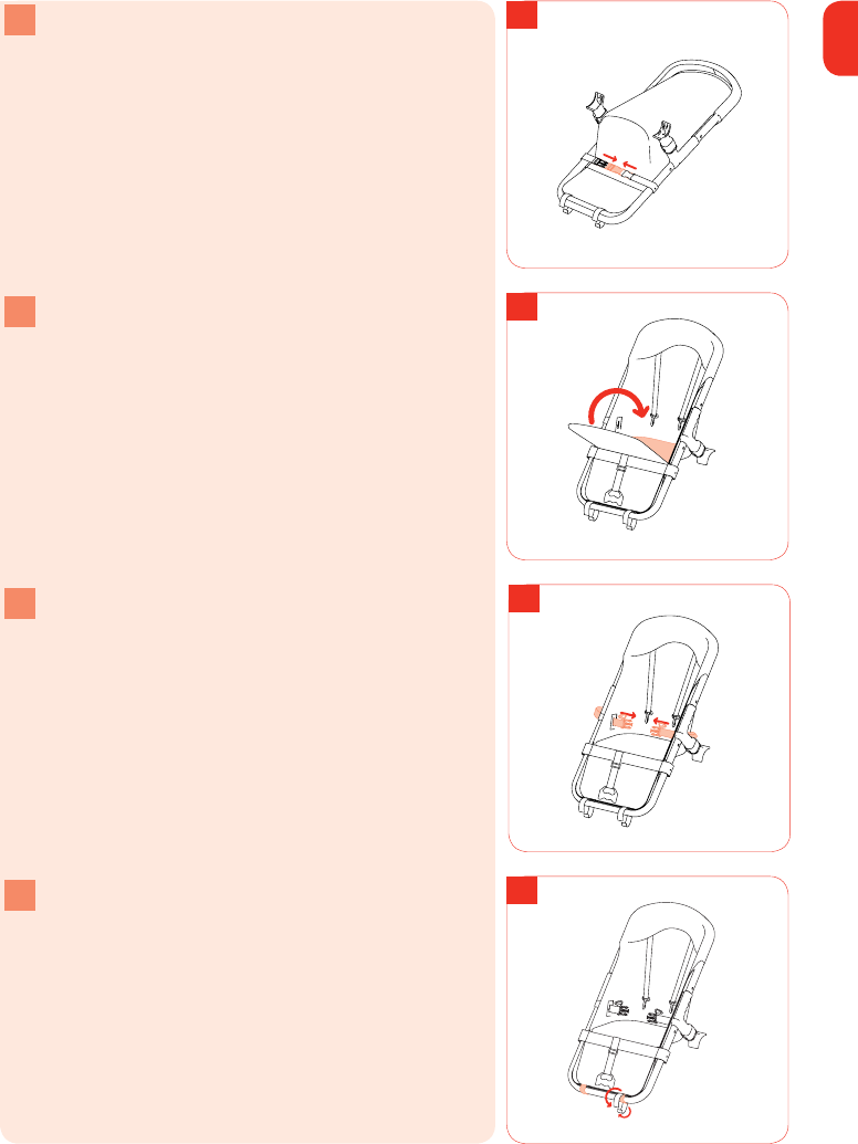g Klik de uiteinden van de spanband onder het zitvlak aan