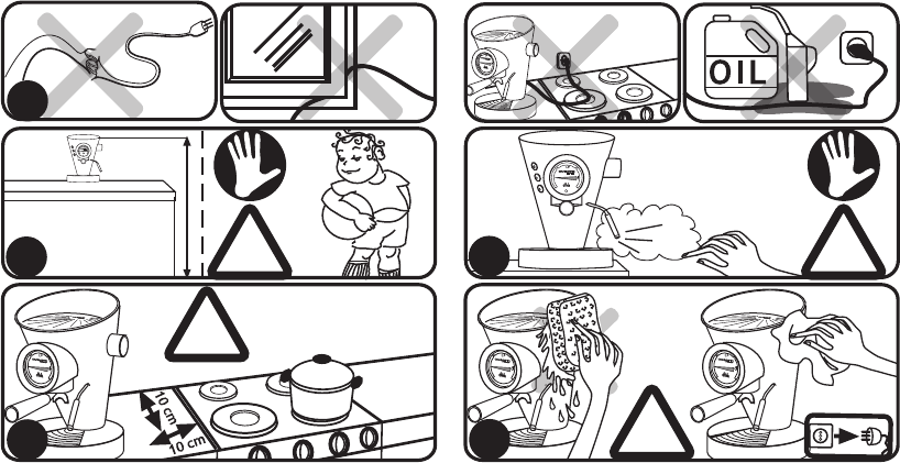 attention aux brûlures ! Ne pas utiliser la machine dans des lieux présentant une température ambiante de