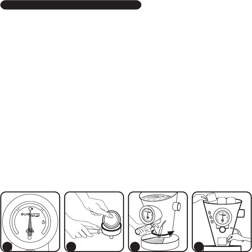 5) Attendre que l’aiguille du thermomètre (6) arrive sur le symbole graphique tasse de café.