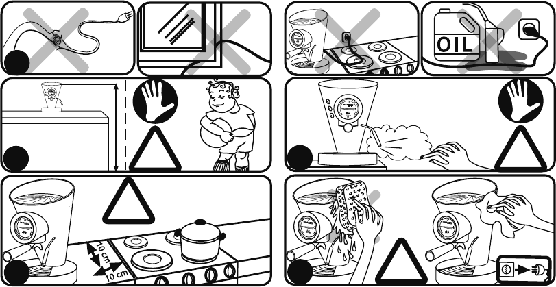 play near the appliance. The machine must be positioned so that the cups warming surface on the top (1) is