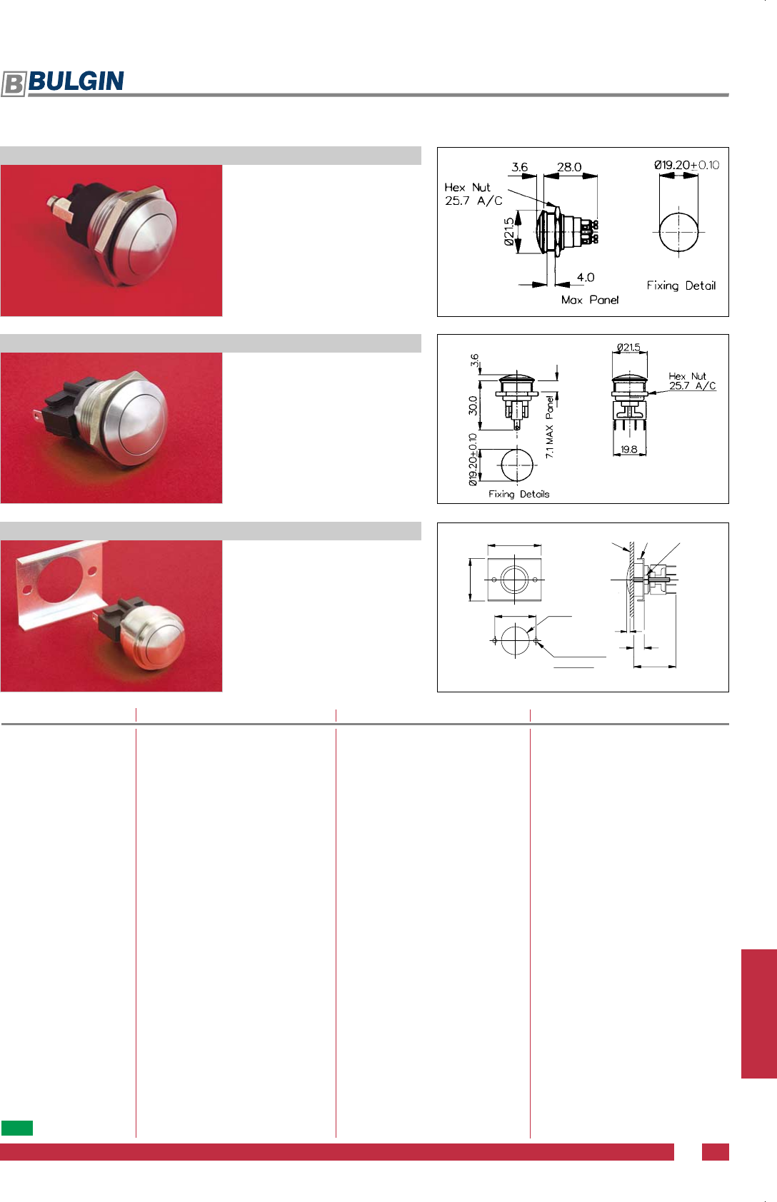 Switching: S.P. Push to make S.P.C.O. Momentary Action S.P.C.O. Momentary Action