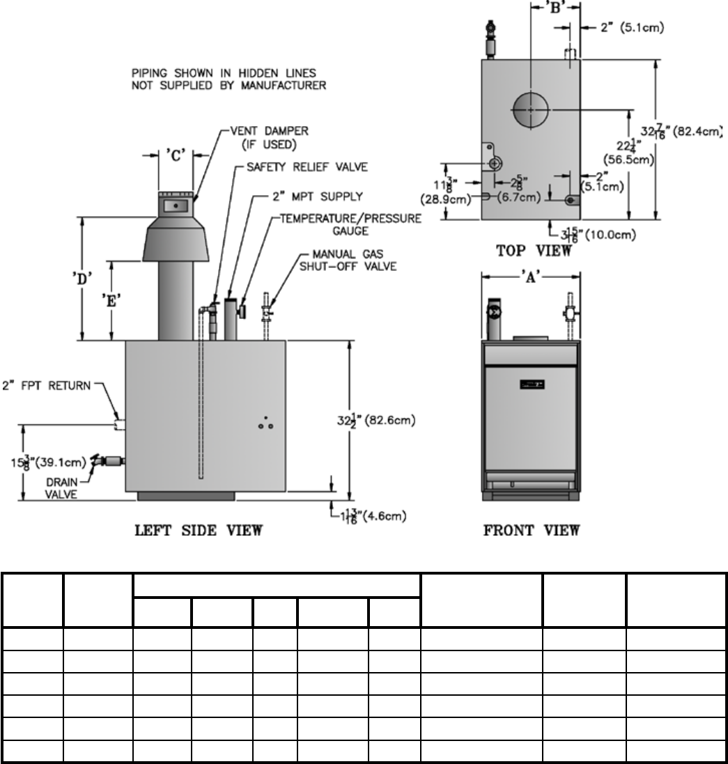 (1) Specialbaserequiredforinstallationsoncombustibleooring;adds4-3/4"toboilerheight(oortojackettoppanelis37-1/4").