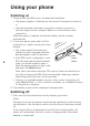 Using your phone Switching on 1 Ensure that a valid SIM card is installed and that either: • The power adapter is attached (as discussed in the previous section), or • The internal battery has been charged for at least two hours (or until the display shows ‘charged’) before it is used without mains connection. Whenever power is applied, the internal battery will be charged automatically. 2 On the rear panel, press and hold the red button for roughly one second, then release.