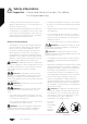 Contents 1 Safety information 2 6 Safety information 6 7 Getting to know your cooker Ready? Let’s begin 12 Product features 13 Control panel 3 Installing your cooker Installatıon and preparatıon for use 16 Electrical connection and safety 17 Anti-tilting kit 18 Care and Maintenance Cleaning 36 Maintenance 37 Product support Troubleshooting 40 Transport 40 Help and assistance 41 Information about transportation 42 Disposal 42 Guarantee 43 Adjusting the feet 4 5 Functions