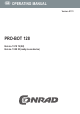 1. Introduction Dear Customer, Thank you for purchasing the PRO-BOT 128. This mobile robot is equipped with a programmable microcomputer, which allows you to define the behaviour and the basic reactions of the robot to external stimulations. We developed the PRO-BOT128 with the aim to meet the high expectations of our customers regarding quality and function.