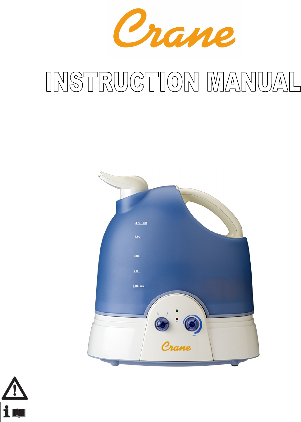 LIMITED WARRANTY Thank you for purchasing a top quality Crane product. This Ultrasonic Humidifier was tested and meets our stringent quality standards. This product is warranted to be free from manufacturing defects under normal use and conditions for 1 year. WARRANTY IS ONLY VALID WITH A DATED PROOF OF PURCHASE.