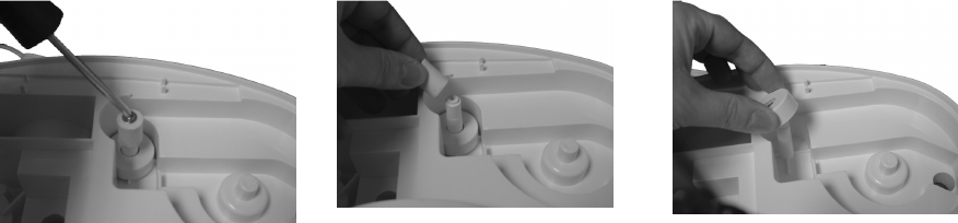 9. To clean the water float unscrew (see Fig.11) the plastic cap on the pin by pulling it