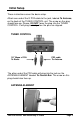 Parts List 1 4 2 5 3 1) 2) 3) 4) TUNER CONTROL ANTENNA ELEMENT FERRITE STICK 1/8" Mono to RCA Connector Patchcord 5) RCA Female Patchcord to Two Bare Wire Ends 6) 1" Piece of Hook and Loop Fastener for FERRITE STICK (not shown) 7) AC Adapter (not shown) 8) 5' Connection Cable (not shown) Battery Installation Remove the battery compartment cover on the bottom of the TUNER CONTROL. Connect the battery. The antenna will run for approximately 45 hours on battery power.