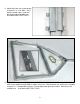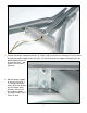 7. Route the wires thru the cross member as shown. Carefully tuck the wires into the frame rails so you are sure of their permanent place along the frame. About 2” behind the side marker lamp use your knife tip to carefully divide about 1/2” of the 2 conductors taking great care to only divide the wires without cutting either conductor. Then grasp and separate by hand about 3” of wire as shown above 8. Press brown wire into the Quick Tap connector as shown.