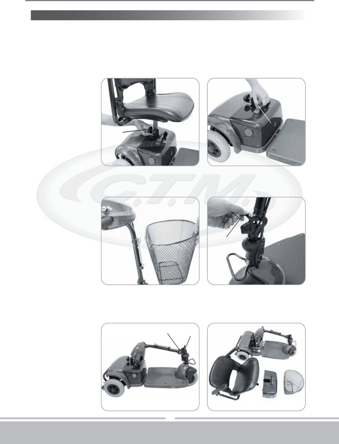 seat of most cars for transportation. No tools are necessary to disassemble scooter.