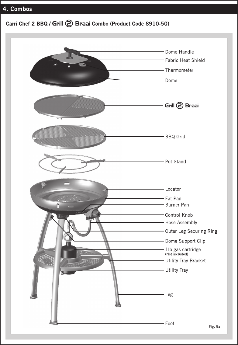 Carri Chef 2 Portable Propane Gas Grill with Pot Stand, Griddle and Pizza Pan