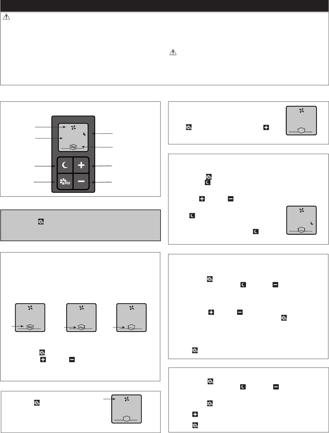 shows 0), and FAN ONLY (display shows 1, 2 or 3).