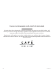 THANK YOU FOR MAKING CAFÉ A PART OF YOUR HOME. We take pride in the craftsmanship, innovation and design that goes into every Café product, and we think you will too. Among other things, registration of your appliance ensures that we can deliver important product information and warranty details when you need them. Register your Café appliance now online. Helpful websites are available in the Consumer Support section of this Owner’s Manual.