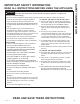 SAFETY INFORMATION IMPORTANT SAFETY INFORMATION READ ALL INSTRUCTIONS BEFORE USING THE APPLIANCE WARNING Continued OPERATING AND CLEANING ■ D o not store anything directly on top of the microwave oven surface when the microwave oven is in operation. ■ O versized foods or oversized metal utensils should not be inserted in a microwave/convection oven as they may create a fire or risk of electric shock. ■ D o not clean with metal scouring pads.