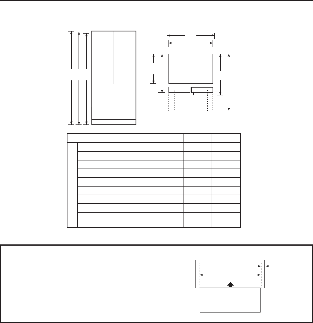 (83.3 cm - 91.4 cm) (depending on model). The refrigerator will be