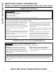 INFORMATION DE SÉCURITÉ INFORMATION DE SÉCURITÉ IMPORTANTES LISEZ TOUTES LES DIRECTIVES AVANT D'UTILISER L'APPAREIL BRANCHEMENTS ÉLECTRIQUES AVERTISSEMENT RISQUE DE CHOC ÉLECTRIQUE Branchez l’appareil dans une prise triple avec terre. Ne retirez pas la broche de terre. N’utilisez pas d’adaptateur. N’utilisez pas un cordon de rallonge. Le non-respect de ces instructions peut entraîner des risques d’incendies, des chocs électriques ou la mort.