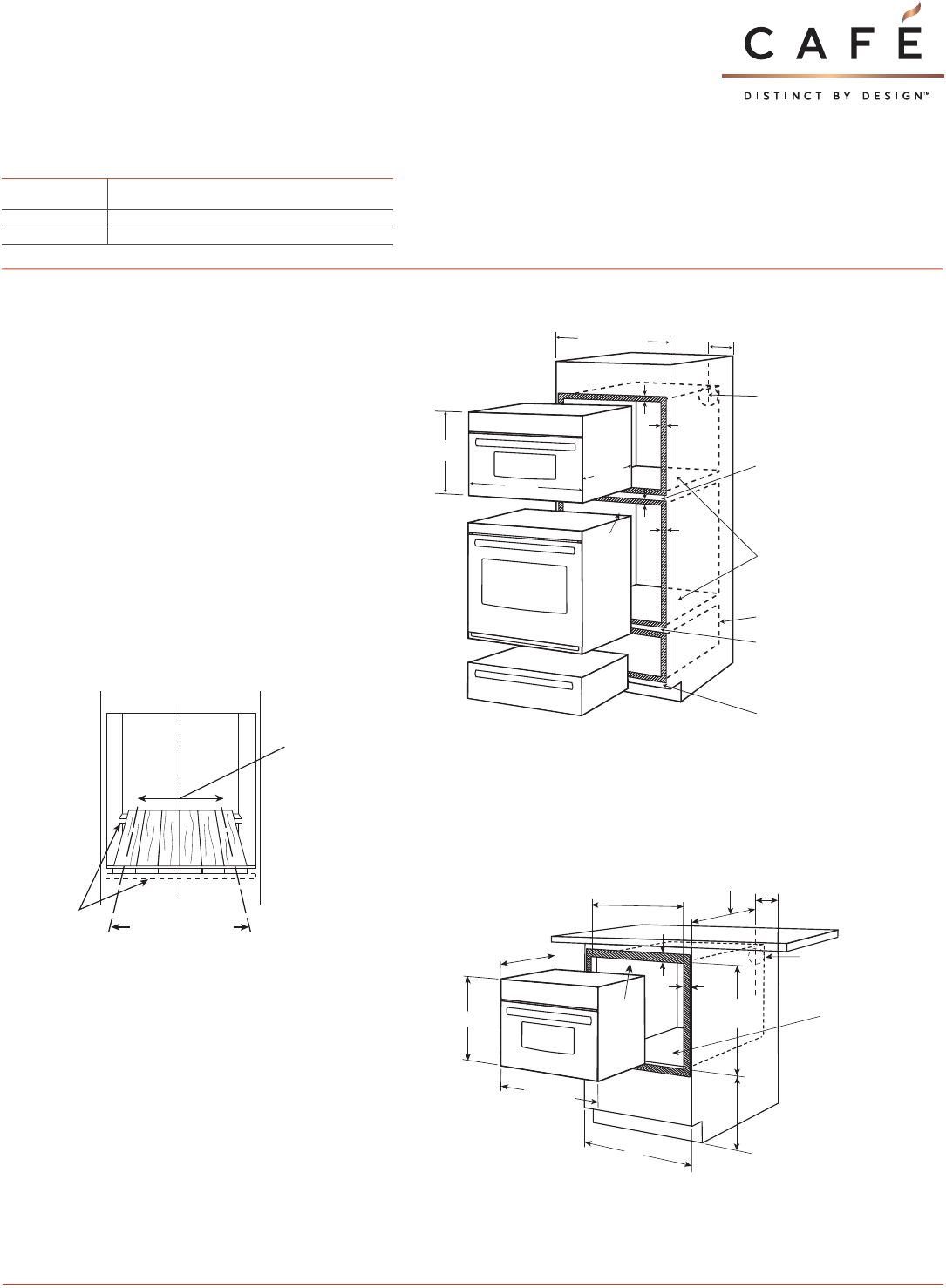 A= Allow 1" overlap of oven over bottom edge of cutout, and allow