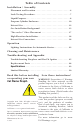 Table of Contents Installation / Assembly Placement and Location . . . . . . . . . . . . . . . . . . . . . . . . . . . . . 6 Leak Testing Procedure . . . . . . . . . . . . . . . . . . . . . . . . . . . . . 7 Liquid Propane . . . . . . . . . . . . . . . . . . . . . . . . . . . . . . . . . . . . 8 Propane Cylinder Enclosure . . . . . . . . . . . . . . . . . . . . . . . . . 10 Natural Gas . . .