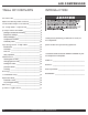 AIR COMPRESSOR TAb Le OF CONTe NTS INTROd u CTION In t r o d u c t Io n __________________________________2 Impo r t a n t Sa f e t y In St r u c t Io n S _______________3 Lo c at Io n S o f Impo r t a n t La b e LS _______________6 a Ir c o mpr e SSo r c o mpo n e n t S__________________7 pr e -o pe r at Io n c h e c k LISt ______________________8 package c ontents & a ssembly____________________8 Inspect for d amage _____________________________9 Save packaging ________________________________9 c ompre
