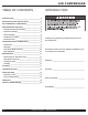 AiR COMPReSSOR TAbLe OF CONTeNTS INTROduCTION IntroductIon __________________________________2 Important Safety InStructIonS _______________5 aIr compreSSor componentS__________________7 pre-operatIon checklISt ______________________8 package contents & assembly____________________8 Inspect for damage _____________________________8 Save packaging ________________________________8 compressor location ___________________________8 electrical power ________________________________9 operatIng the aIr compreSS