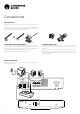 Connections LOUDSPEAKERS Check the impedance of your speakers. You can use types with an impedance of 8 Ohms. The red coloured speaker terminals are positive (+) and the black speaker terminals are negative (-). Make sure correct polarity is maintained at each speaker connector or the sound can become weak and “phasey” with little bass. USING BARE WIRE CONNECTIONS USING BANANA PLUGS Prepare the speaker cords for connection by stripping off approximately 10mm (3/8”) or less of the outer insulation.