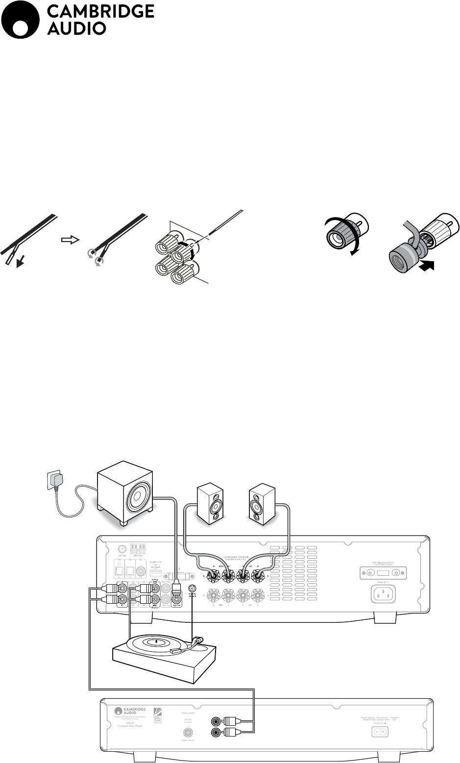 Note: All connections are made using standard loudspeaker cable.