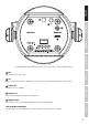 - ENGLISH 9 10 10 MIC DEUTSCH 8 5 12 12 7 10 ESPAÑOL 10 11 FRANCAIS 6 The CLROOTPAR4 and CLROOTPAR6 models feature identical connections, operating and display elements. 8 MIC 9 POLSKI Microphone for music-control mode. TILT Knurled screw for the TILT feature for uplighting. For a more discreet look, the installation double bracket can be removed. 10 RUBBER FEET ITALIANO Four rubber feet for good stability.